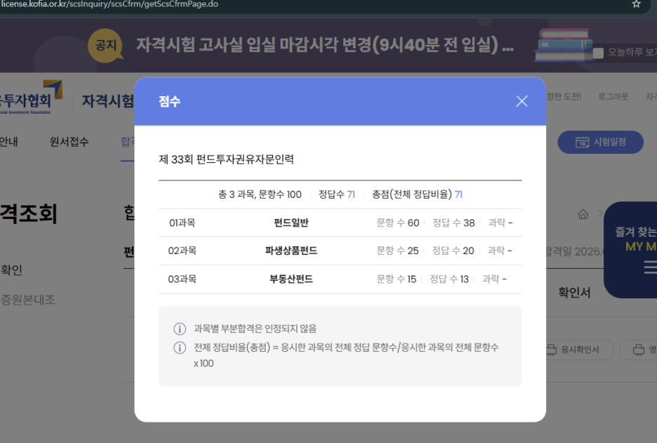 두둥! 2026/03/08 펀드투자권유자문인력 시험에 합격했다.